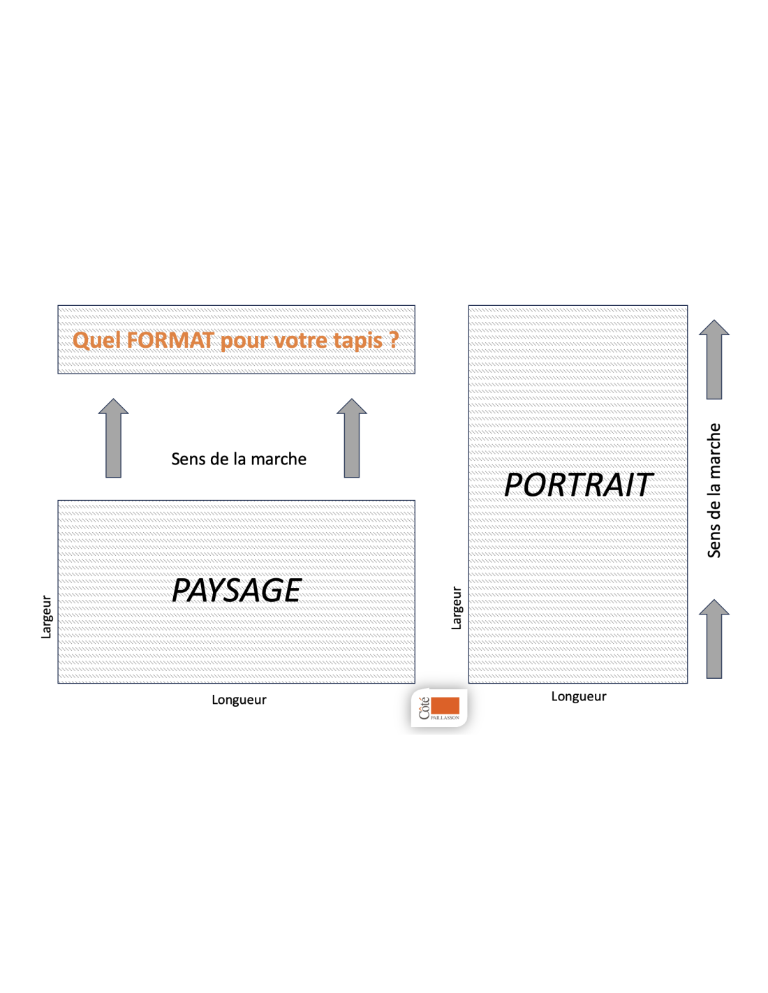 Saisissez vos dimensions INTERIEUR CADRE en cm (ex : 123,4 cm) puis sélectionnez le sens (Portrait ou Paysage) du tapis, pour finaliser votre commande.